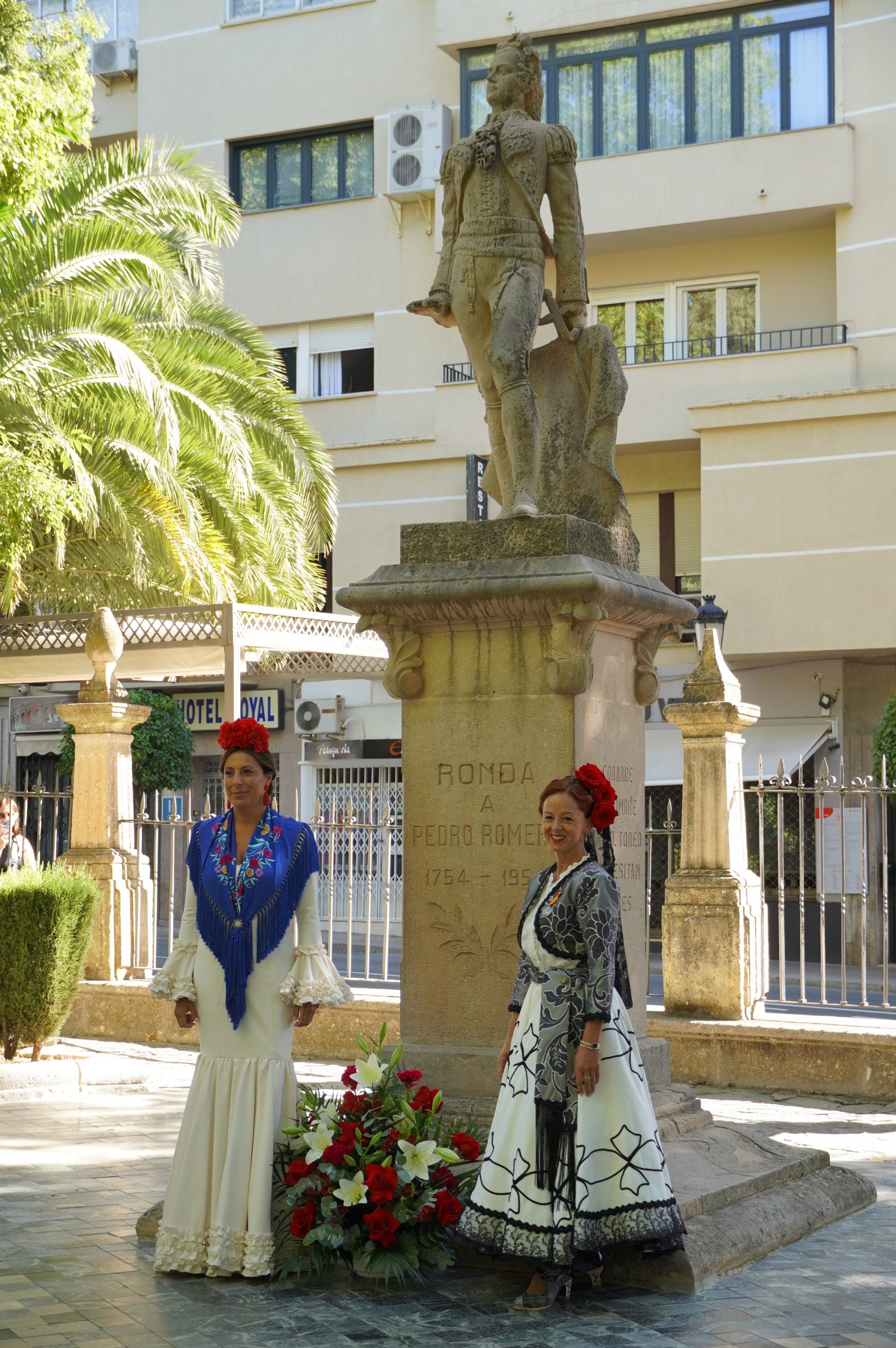 El la Alameda se ha hecho la tradicional ofrenda al Monumento de Pedro Romero, por parte de la alcaldesa, Mari Paz Fernández, y la Presidenta de las Damas Goyescas, Milagros Naranjo, junto con las Damas y también la delegada municipal de Fiestas, Rebeca Muñoz. Al acto también han asistido ediles del equipo de gobierno y de la oposición y ha estado amenizado por la Banda Municipal de Ronda.